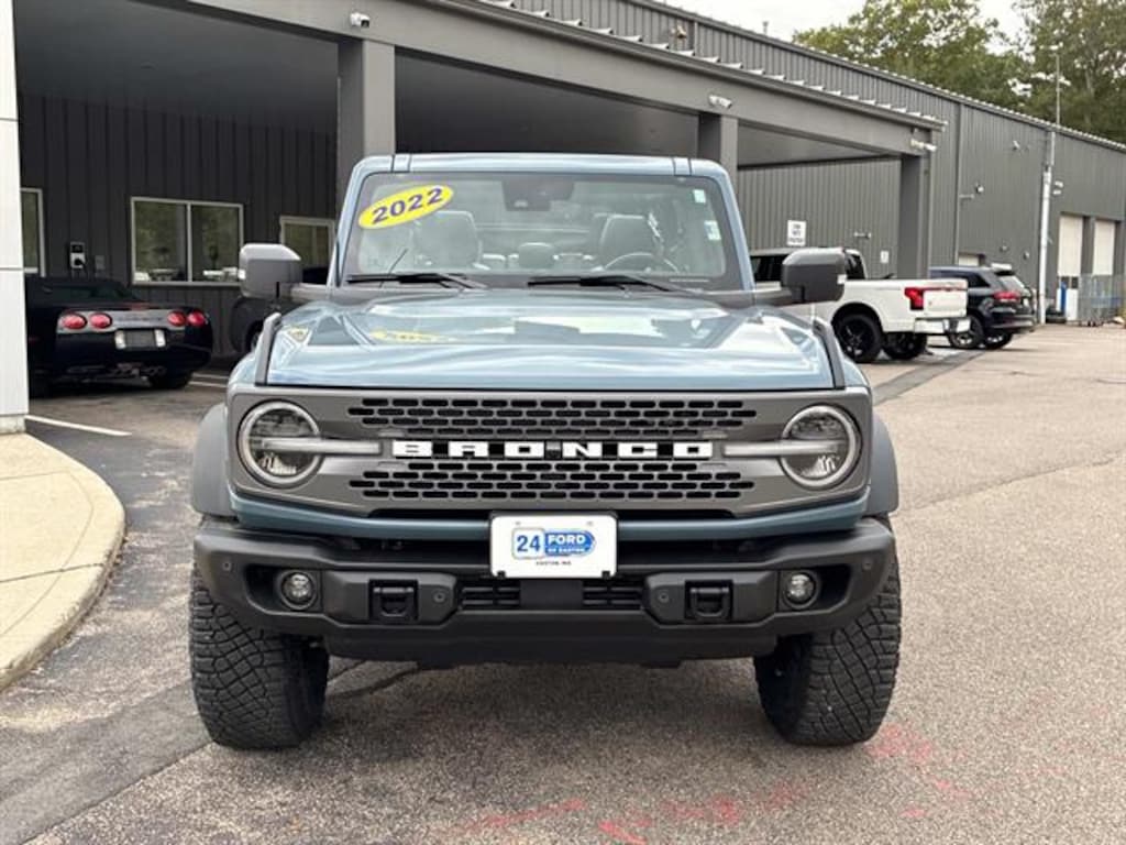 CARFAX One-Owner Black Onyx Leather-Trimmed/Vinyl Seats, Equipment Group 334A, Sasquatch Package Take on any adventure in this eye-catching Lt. Blue 2022 Ford Bronco Badlands Advanced 4x4 SUV! Built for serious off-roaders, this Bronco comes loaded with the sought-after Sasquatch Package, giving you advanced off-road tuned suspension, electronic locking front and rear differentials, and beefy 35-inch tires. Power comes from the robust EcoBoost 2.7L Twin Turbo V6 paired with a 10-speed shiftable automatic and part-time 4WD with on-demand settings. Enjoy tech like wireless Apple CarPlay/Android Auto, FordPass Connect, an 8-inch touchscreen, and a premium SYNC infotainment system. Safety is covered with automatic emergency braking, pedestrian detection, and a rearview camera. Other highlights include a removable soft top, full-size matching spare, heated side mirrors, and rugged vinyl upholstery. Whether hitting the trails or cruising the city, this Bronco delivers style, capability, and comfort. 24 Ford of Easton is Massachusetts's Premier Family-Owned New Ford and Used Car Dealer, serving the needs of customers from South Easton to Brockton, Bridgewater to Stoughton, all the Greater Boston area, and everywhere in-between for nearly 20 years. In addition to sales, we also offer a state-of-the-art service department with all Ford Master-Certified Technicians, a Quick Lane Tire and Auto center for quick in-and-out service, and of course an outstanding Parts department. 24 Ford of Easton is your one-stop-shop for all your automotive needs. So don't hesitate. Call us now and ask to speak with one of our fully certified and customer-friendly Sales Consultants. From there, you will be able to schedule a test drive, Brake job or Oil Change of any of our 11 locations. We have New and Pre-Owned vehicles on the lot! DEALER FINANCING REQUIRED FOR ONLINE PRICE!!!