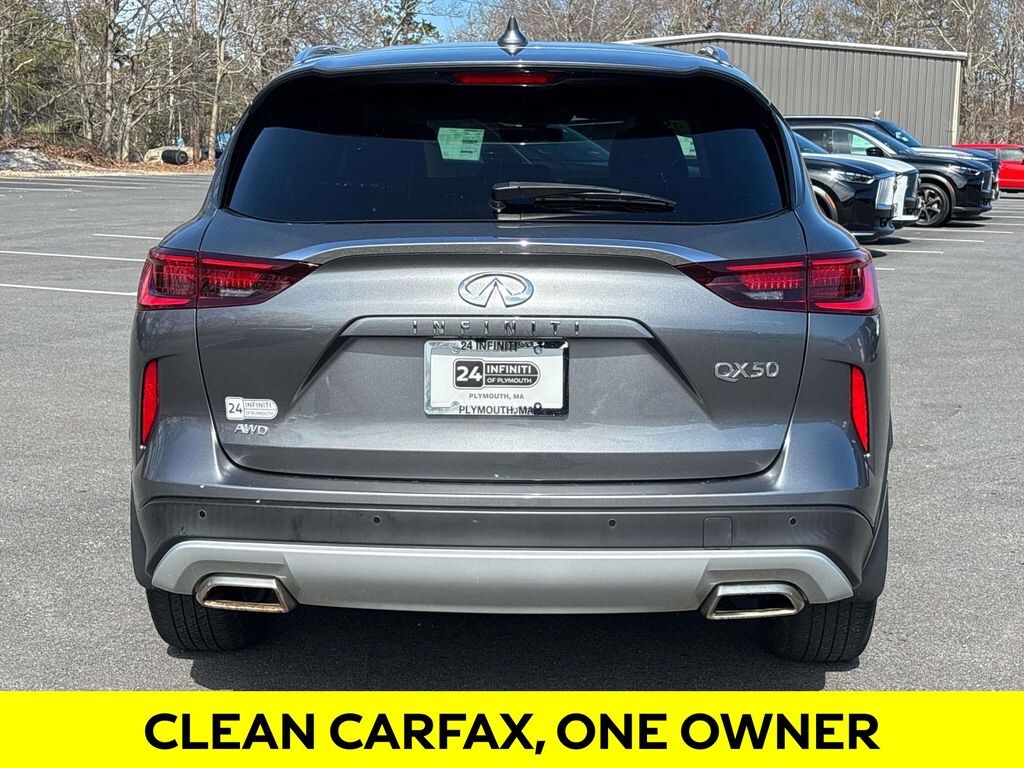 Powered by a responsive I4 engine and equipped with Intelligent All-Wheel Drive, this QX50 LUXE delivers an exceptional driving experience, combining confident handling with impressive fuel efficiency of 22 MPG in the city and 28 MPG on the highway.