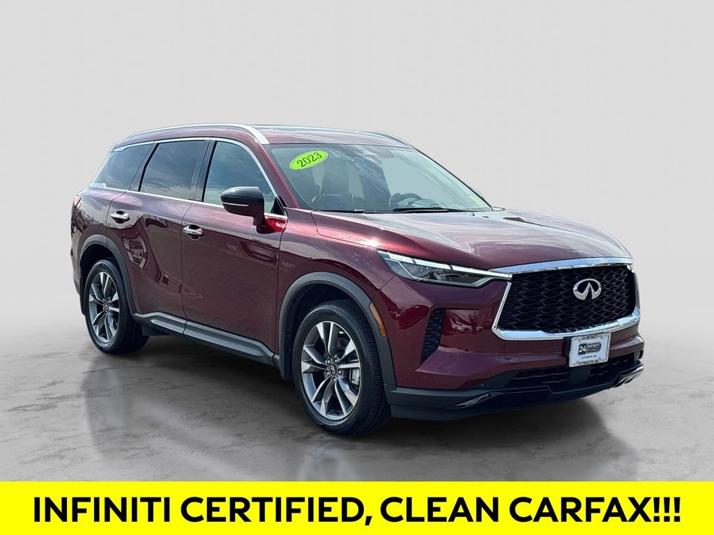 Discover the exceptional 2023 INFINITI QX60 LUXE, a premium SUV that redefines the driving experience. With its stunning Red exterior and a powerful 3.5L V6 engine paired with a smooth 9-Speed Automatic transmission, this All-Wheel Drive SUV delivers exceptional performance and efficiency, boasting 20 city and 25 highway MPG.