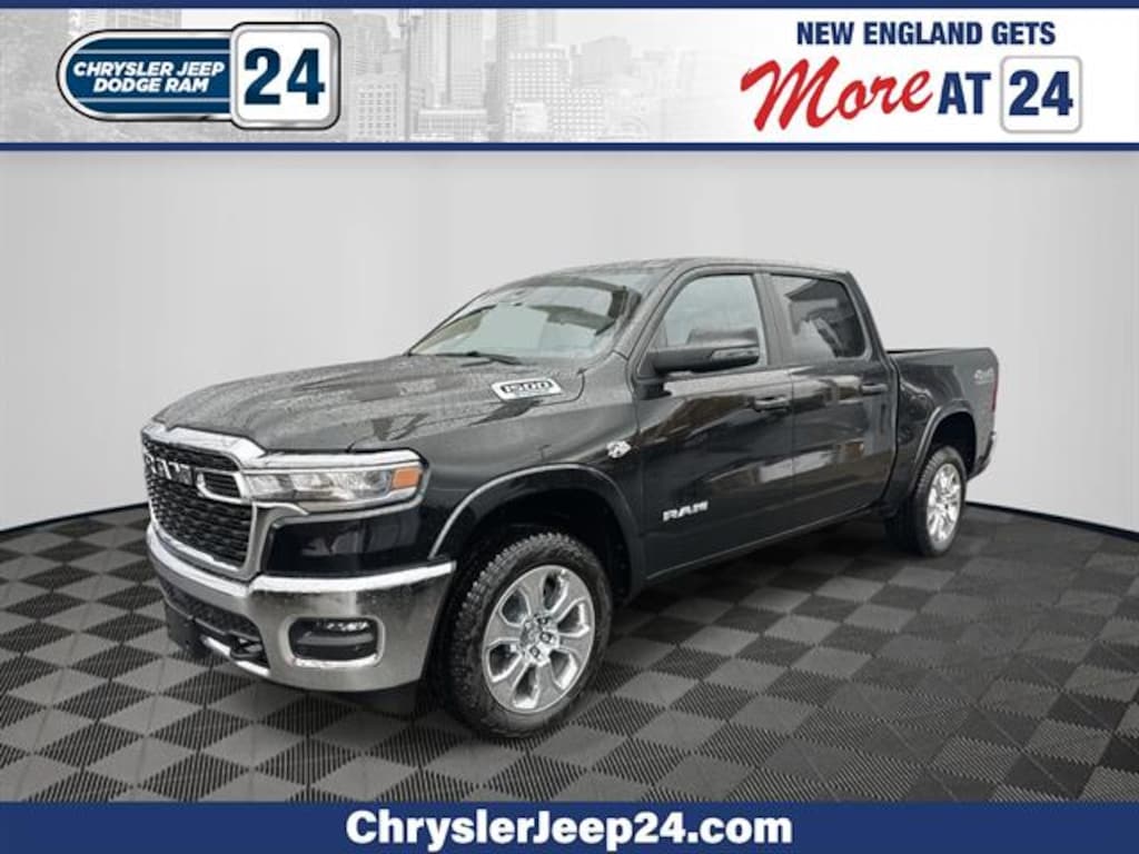 Experience the power and versatility of the 2026 Ram 1500 Big Horn 4x4 Crew Cab, finished in stunning Black with only 10 miles on the odometer. Equipped with the robust HEMI eTorque 5.7L V8 (395hp, 410 lb-ft), 8-speed automatic transmission, and Off Road Group package, this truck is ready for work or adventure. Enjoy advanced safety features like Blind Spot Detection, Forward Collision Warning-Plus, ParkSense front and rear sensors, and Active Lane Management. Stay comfortable with heated front seats, heated steering wheel, power-adjustable pedals, and premium cloth bucket seats. Tech includes Uconnect 5 with 8.4" touchscreen, Apple CarPlay, Android Auto, and a 4G LTE Wi-Fi Hot Spot. With trailer tow package (Class IV hitch, wiring harness), 20" chrome aluminum wheels, and a 33-gallon fuel tank, you're prepared for any journey. Additional highlights: adaptive cruise, power-folding mirrors, spray-in bedliner, and split-fold rear seats. This is a rare opportunity to own a nearly brand new Ram 1500 Big Horn loaded with options-contact us today for a test drive! Chrysler Jeep Dodge Ram 24 is your one-stop-shop for all your automotive needs so don't hesitate; Call us now and ask to speak with one of our fully certified and customer-friendly Sales or Service Consultants. From there, you will be able to schedule a test drive, Brake job or Oil Change of any of our 11 locations. We have New and Pre-Owned vehicles on the lot! Customer First Award for Excellence CJDR 24 is committed to offering our Brockton customers with the highest level of customer service, which is why we are thrilled to be a honored recipient of the FCA Customer First Award for Excellence. This prestigious award is designated for only those dealerships exemplifying extraordinary care and dedication to their customers, in five key areas of performance: Give us the opportunity to show you. Call or visit us today.