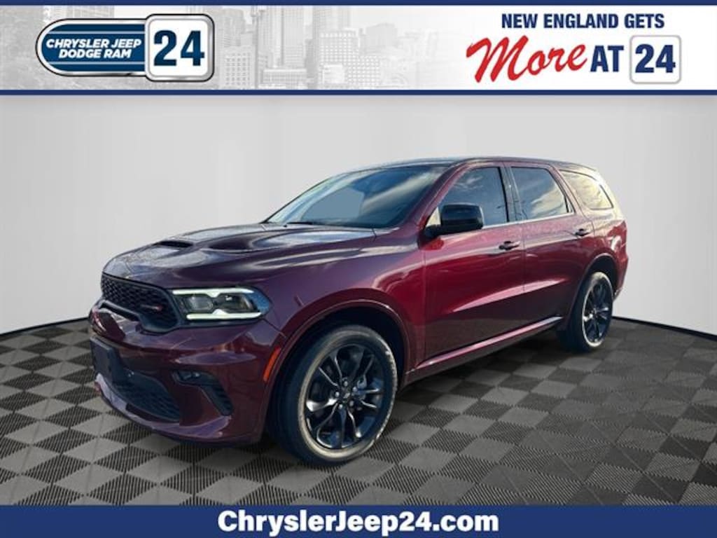 CERTIFIED!! CARFAX One-Owner Leather, Power Sunroof, Apple CarPlay Android Auto, Rear Park Assist,Blind-Spot and Cross-Path Detection, Remote Start, Power Liftgate, Blacktop! Experience the perfect blend of power, style, and versatility with this Dark Red 2022 Dodge Durango AWD GT. Featuring the robust Pentastar 3.6L V6 engine paired with an 8-speed shiftable automatic transmission and full-time all-wheel drive, this SUV is built for confident performance in any season. The GT trim offers premium features like heated leather-trimmed bucket seats, a heated steering wheel, and a power sunroof. Stay connected and entertained with an 8.4-inch Uconnect infotainment system, Apple CarPlay, Android Auto, Bluetooth, and SiriusXM Satellite Radio. Enjoy added safety with rear cross traffic alert, rear parking sensors, blind spot monitoring, and rear automatic emergency braking. The spacious interior boasts third-row seating, a power liftgate, and versatile cargo options-ideal for families and adventurers alike. Stand out with 20-inch Black Noise aluminum wheels and the sleek Blacktop Package. This Durango is ready to deliver comfort, capability, and advanced technology for your daily drive or next road trip. Low miles! 18,601 Miles Below Average Chrysler Jeep Dodge Ram 24 is your one-stop-shop for all your automotive needs so don't hesitate; Call us now and ask to speak with one of our fully certified and customer-friendly Sales or Service Consultants. From there, you will be able to schedule a test drive, Brake job or Oil Change of any of our 11 locations. We have New and Pre-Owned vehicles on the lot! Customer First Award for Excellence CJDR 24 is committed to offering our Brockton customers with the highest level of customer service, which is why we are thrilled to be a honored recipient of the FCA Customer First Award for Excellence. This prestigious award is designated for only those dealerships exemplifying extraordinary care and dedication to their customers, in five key areas of performance: Give us the opportunity to show you. Call or visit us today.