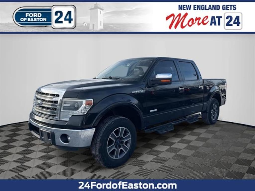 FULLY SERVICED Clean CARFAX Equipment Group 502A, Lariat Chrome Package Discover the perfect blend of power, comfort, and style with this Black 2013 Ford F-150 Lariat SuperCrew. Featuring the potent EcoBoost 3.5L Twin Turbo V6 engine and a smooth 6-speed shiftable automatic transmission, this 4x2 pickup is ready for both work and play. Enjoy premium amenities like leather captain's chairs with console and floor shifter, heated front seats, dual-zone automatic climate control, and a spacious SuperCrew cabin. Stay connected with an 8-inch SYNC infotainment touch screen, Bluetooth, SiriusXM satellite radio, and voice-operated controls. The Lariat Chrome Package adds standout appeal with polished aluminum alloy wheels, chrome bumpers, and 6-inch chrome running boards. Additional highlights include a spray-in bed liner, trailer brake controller, power-adjustable pedals, keyless entry, rearview auto-dimming mirror, and memory settings for driver convenience. Safety features like roll stability control, front/rear side curtain airbags, and a tire pressure monitoring system provide peace of mind. This F-150 is loaded and ready for its next adventure-test drive today! 24 Ford of Easton is Massachusetts's Premier Family-Owned New Ford and Used Car Dealer, serving the needs of customers from South Easton to Brockton, Bridgewater to Stoughton, all the Greater Boston area, and everywhere in-between for nearly 20 years. In addition to sales, we also offer a state-of-the-art service department with all Ford Master-Certified Technicians, a Quick Lane Tire and Auto center for quick in-and-out service, and of course an outstanding Parts department. 24 Ford of Easton is your one-stop-shop for all your automotive needs. So don't hesitate. Call us now and ask to speak with one of our fully certified and customer-friendly Sales Consultants. From there, you will be able to schedule a test drive, Brake job or Oil Change of any of our 11 locations. We have New and Pre-Owned vehicles on the lot! DEALER FINANCING REQUIRED FOR ONLINE PRICE!!!