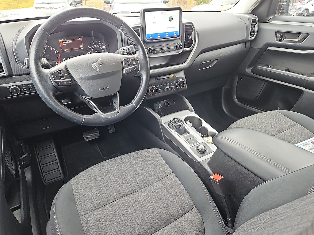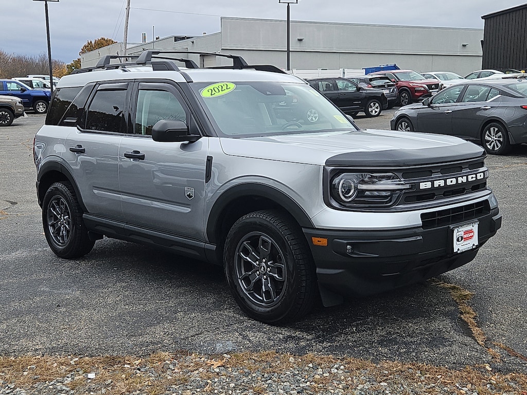 Experience adventure in style with this Silver 2022 Ford Bronco Sport Big Bend AWD SUV. Powered by a fuel-efficient EcoBoost 1.5L Turbo engine and paired with an 8-speed automatic transmission, this Bronco Sport is designed for both city driving and off-road exploration. Enjoy peace of mind with advanced safety features like Lane Keeping Assist, Front Automatic Emergency Braking, Blind Spot Monitoring, and Rear Cross Traffic Alert. Stay connected with an 8-inch SYNC infotainment system featuring Android Auto, Apple CarPlay, and FordPass Connect with Wi-Fi hotspot capability. The interior offers premium cloth upholstery, automatic climate control, and convenient features like push-button start, split-folding rear seats, and ample cargo space with a cargo management system. Rugged aluminum alloy wheels, roof-rail crossbars, and black roof rails complete the sporty look. This Bronco Sport is ready for your next journey-schedule your test drive today!
