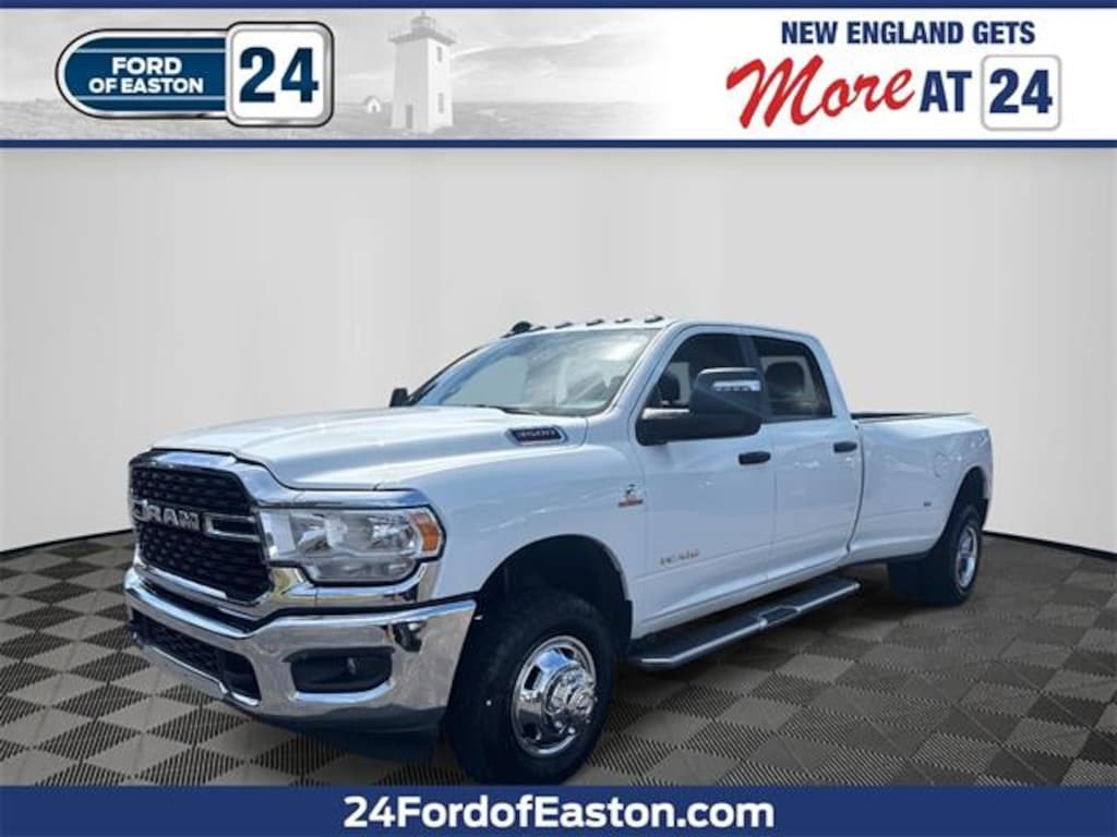 Fully Serviced!, Bluetooth, Backup Camera, Tow Package, Remote Start, 5th Wheel Goose Neck, 2 Way Rear Headrest Seat, 2nd Row In Floor Storage Bins, 4 Way Front Headrests, 40/20/40 Split Bench Seat, 4G LTE Wi-Fi Hot Spot, 8.4" Touchscreen Display, All R1 Low Radios, All Radio Equipped Vehicles, Apple CarPlay, Auto Power-Folding Mirrors, Black Exterior Mirrors, Bluetooth Handsfree Phone & Audio, Center Hub, Connectivity - US/Canada, Dual Glove Boxes, Exterior Mirrors Courtesy Lamps, Exterior Mirrors w/Heating Element, Exterior Mirrors w/Supplemental Signals, Foam Bottle Insert (Door Trim Panel), Footwell Courtesy Lamp, For Details Visit DriveUconnect.com, For More Info, Call 800-643-2112, Forward & Reverse Utility Lights, Front Armrest w/Cupholders, Front Center Seat Cushion Storage, Front Fog Lamps, Front Seat Back Map Pockets, Global Telematics Box Module (TBM), Glove Box Lamp, Google Android Auto, GPS Antenna Input, Integrated Center Stack Radio, Integrated Voice Command w/Bluetooth, Leather Wrapped Steering Wheel, Level 1 Equipment Group, Locking Lower Glove Box, Manual Adjust 4-Way Front Passenger Seat, Mirror Running Lights, Power Adjust 8-Way Driver Seat, Power Adjust Mirrors, Power Heated Fold Telescopic Mirrors, Power Telescoping Mirrors, Power-Adjustable Convex Aux Mirrors, Premium Cloth 40/20/40 Bench Seat, Quick Order Package 2HZ Big Horn, Radio: Uconnect 5 w/8.4" Display, Rear 60/40 Folding Seat, Rear Dome w/On/Off Switch Lamp, Remote USB Port - Charge Only, Selectable Tire Fill Alert, SiriusXM Radio Service, SiriusXM Satellite Radio, Steering Wheel Mounted Audio Controls, Storage Tray, Wheels: 18" x 8.0" Polished Aluminum. CARFAX One-Owner. Clean CARFAX. Bright White Clearcoat 2024 Ram 3500 Big Horn 4D Crew Cab 4WD 6-Speed Automatic Cummins 6.7L I6 Turbodiesel 24 Ford of Easton is Massachusetts's Premier Family-Owned New Ford and Used Car Dealer, serving the needs of customers from South Easton to Brockton, Bridgewater to Stoughton, all the Greater Boston area, and everywhere in-between for nearly 20 years. In addition to sales, we also offer a state-of-the-art service department with all Ford Master-Certified Technicians, a Quick Lane Tire and Auto center for quick in-and-out service, and of course an outstanding Parts department. 24 Ford of Easton is your one-stop-shop for all your automotive needs. So don't hesitate. Call us now and ask to speak with one of our fully certified and customer-friendly Sales Consultants. From there, you will be able to schedule a test drive, Brake job or Oil Change of any of our 11 locations. We have New and Pre-Owned vehicles on the lot! DEALER FINANCING REQUIRED FOR ONLINE PRICE!!!